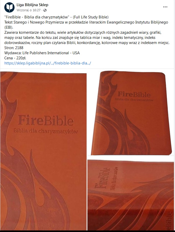 W 2022 roku wszystkie pozory padły. Liga Biblijna obnażyła swoje prawdziwe ekumeniczne oblicze i wydała na świat duchowego bękarta. Wprowadzając do sprzedaży Biblię Ognia czyli tekst specjalnie przygotowany dla charyzmatyków, czyli reprezentantów ostatecznego doktrynalnego zwyrodnienia zapewniła sobie trwały związek partnerski, czyli konkubinat, z najwyższym duchowym zwiedzeniem.
